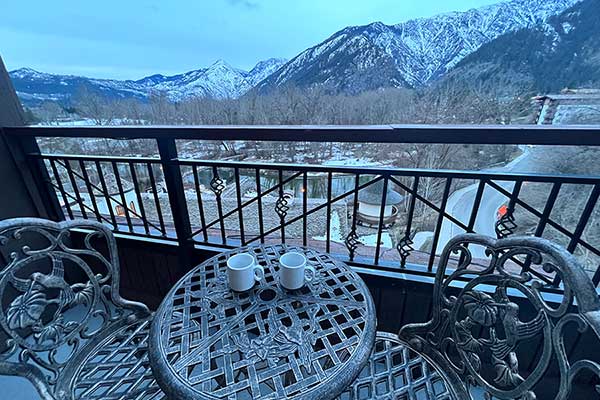 Escape to this small, European-style lodge in the Bavarian village of Leavenworth located 130 miles northeast of Seattle. Enjoy views of the Wenatchee River, Blackbird Island, and the surrounding mountains sprinkled with snow.